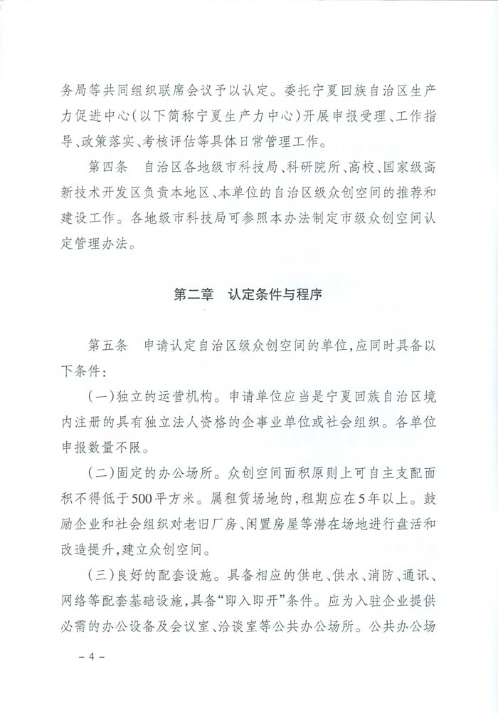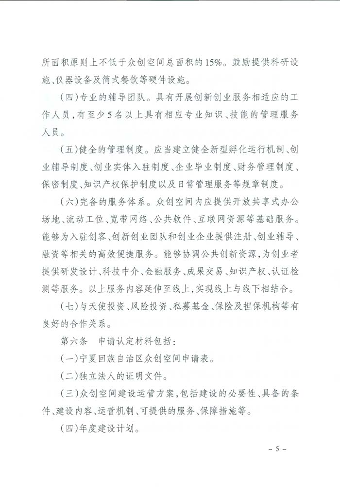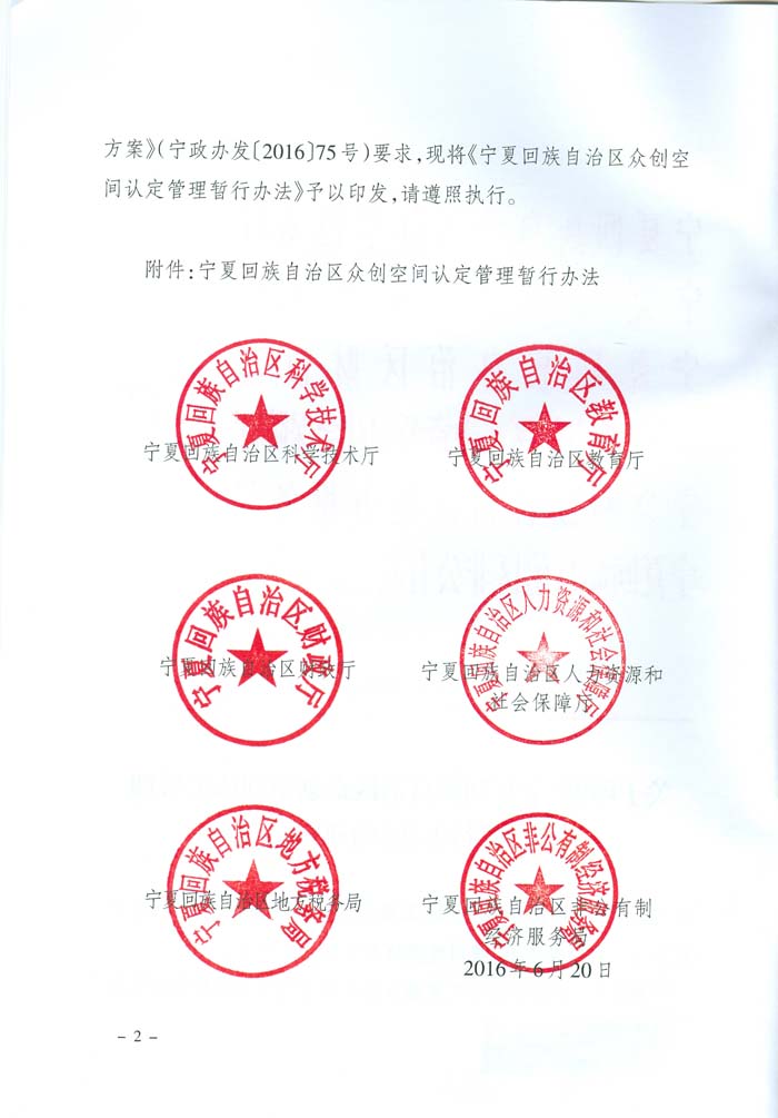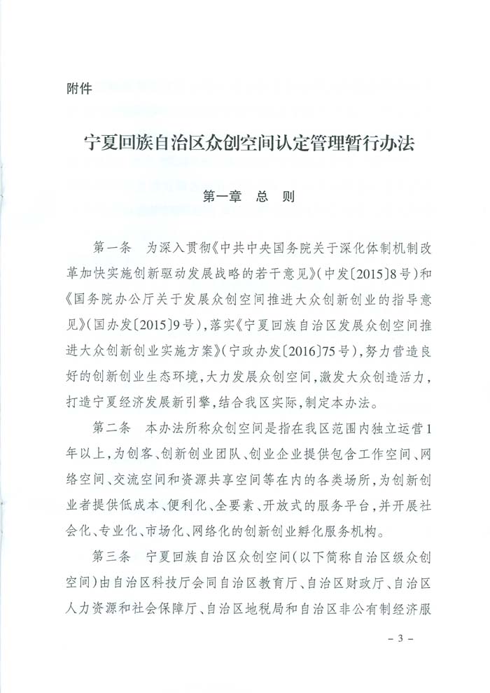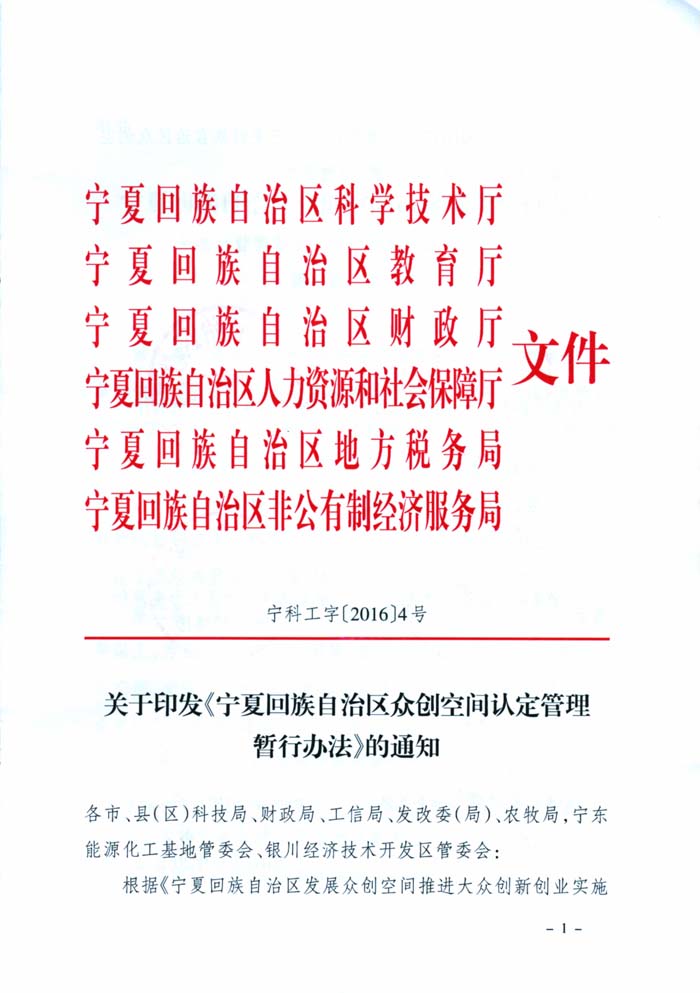 关于印发《宁夏回族自治区众创空间认定管理暂行办法》的通知